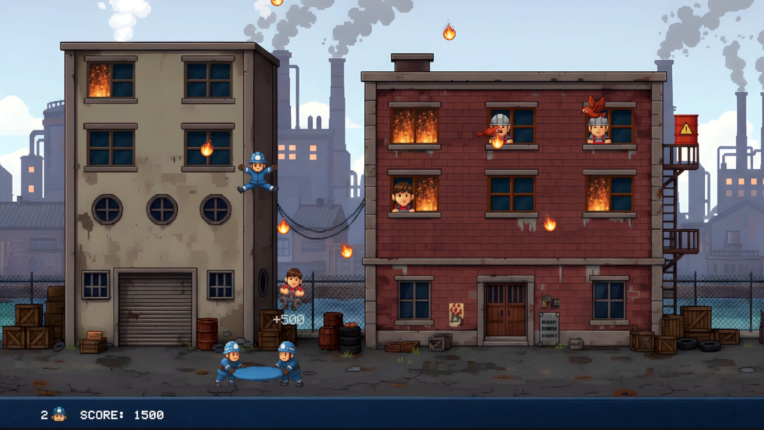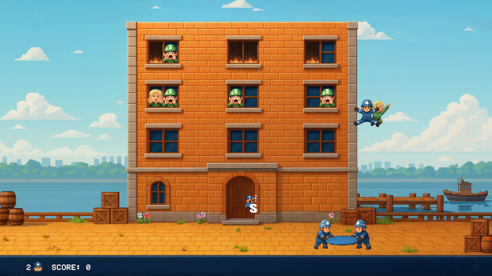 Fire's Up is a fast-paced arcade game with pixel art inspired by 90s classics. You control two firefighters who catch and bounce their comrade using a trampoline, helping him save the inhabitants of a burning city. Every bounce is a chance to save a life... or lose a hero. Will you test your reflexes?
